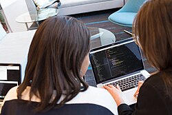 Pair programming is when two people work together on a computer to write code. One person is the 'driver' and types in the code, while the other person is the 'observer' and makes sure everything looks right and helps the driver come up with ideas. It's like working with a partner on a school project, but with computers.