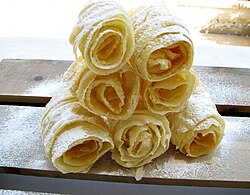 Finally, you can sprinkle some powdered sugar or cinnamon on top of the Fazuelos to make them taste delicious! Now you have a tasty treat to share with your friends and family. Congrats!