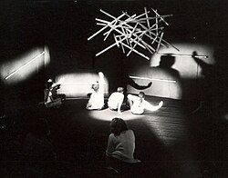 Interactive art is art that changes based on what the person experiencing the art does. It’s like a game, but it’s art instead. For example, you might be in a room filled with sculptures. If you go up to one of the sculptures and touch it, something might happen in the room. Maybe the lights start to change colors, or you hear music. It's like when you play with a special toy and it does something when you push a button. Interactive art does something special when you interact with it.