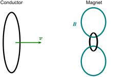 The moving magnet and conductor problem is an experiment that demonstrates the connection between electricity and magnetism. To do this experiment you need a magnet, conductor (like a piece of copper wire) and a power source (like a battery). First you put your magnet next to the conductor and nothing happens. Then you start to move the magnet towards and away from the conductor, and you will see an electric current start to flow in the conductor. This is because when you move the magnet, it creates a magnetic field (an invisible energy field) which induces an electric current to flow in the conductor, just like twisting a rubber band will create energy which can make a toy car move. This shows that electricity and magnetism are connected, and that is the moving magnet and conductor problem.