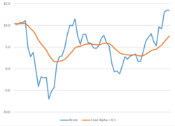 Smoothing is like when you take a bumpy road, and then you roll it out with a giant roller so it's nice and flat. That flat road is like a smoothed out version of the bumpy one. In data, smoothing means calculating an average of different numbers (like amounts of rainfall over the past few weeks) so that it shows a pattern rather than being just a bunch of wiggles. Smoothing makes data easier to understand and predict.