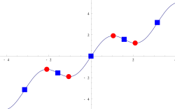 A stationary point is like a point on a rollercoaster where the car goes up and then stops before it goes down again. When you look at the rollercoaster, it looks like a curve or a line that goes up and down, but when the car reaches the highest point, it doesn't move anymore, and it's called the stationary point.