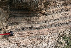 Varves can be different colors, textures, or thicknesses depending on what was in the sediment that year. For example, if there was a flood, the sediment might have been larger and coarser, creating a thicker layer. If it was a dry year with less sediment, the varve might be thinner.